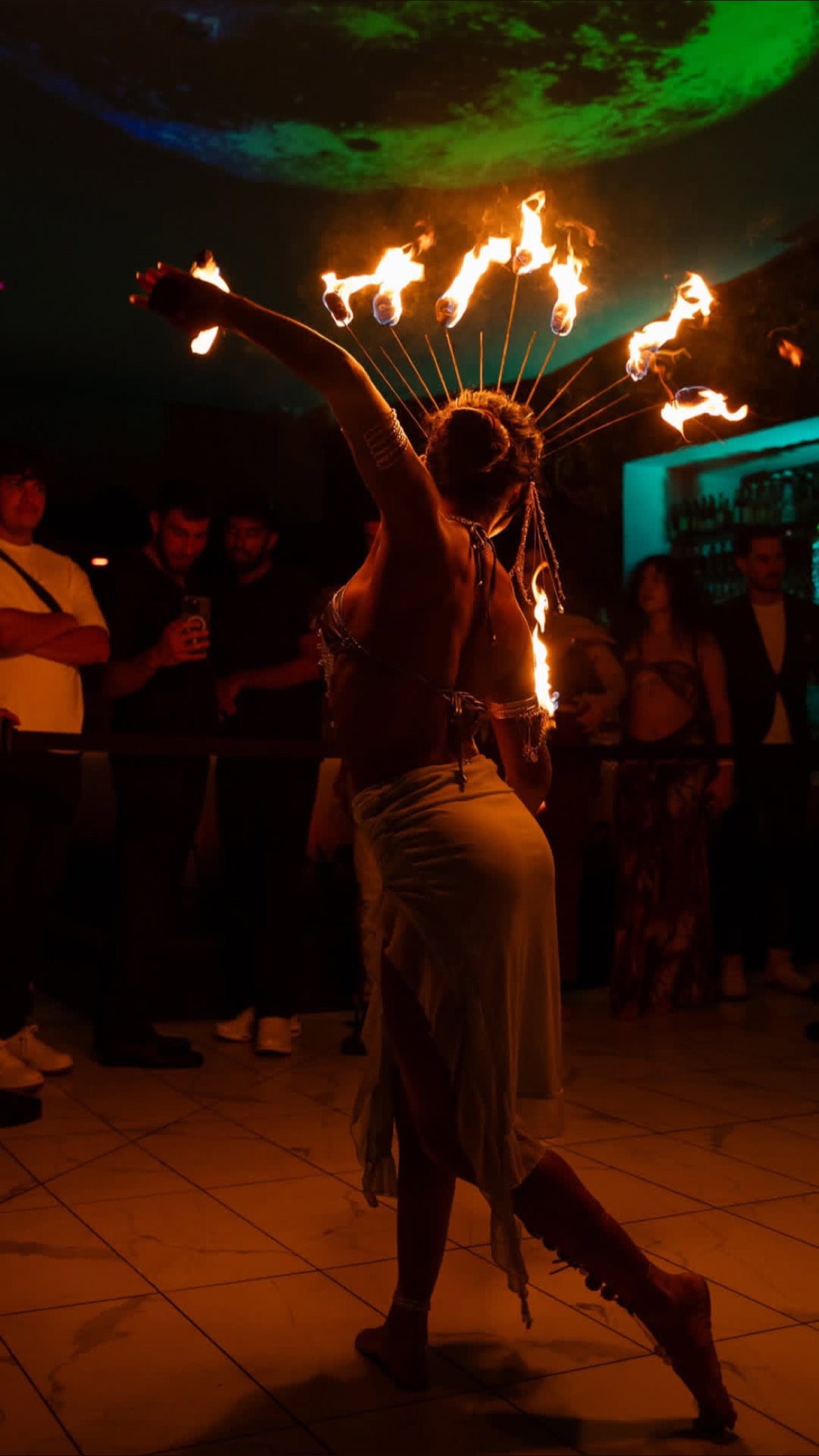 As part of our full moon events, our talented performers light up the night with breathtaking fire routines, creating an unforgettable ambiance high above the city skyline