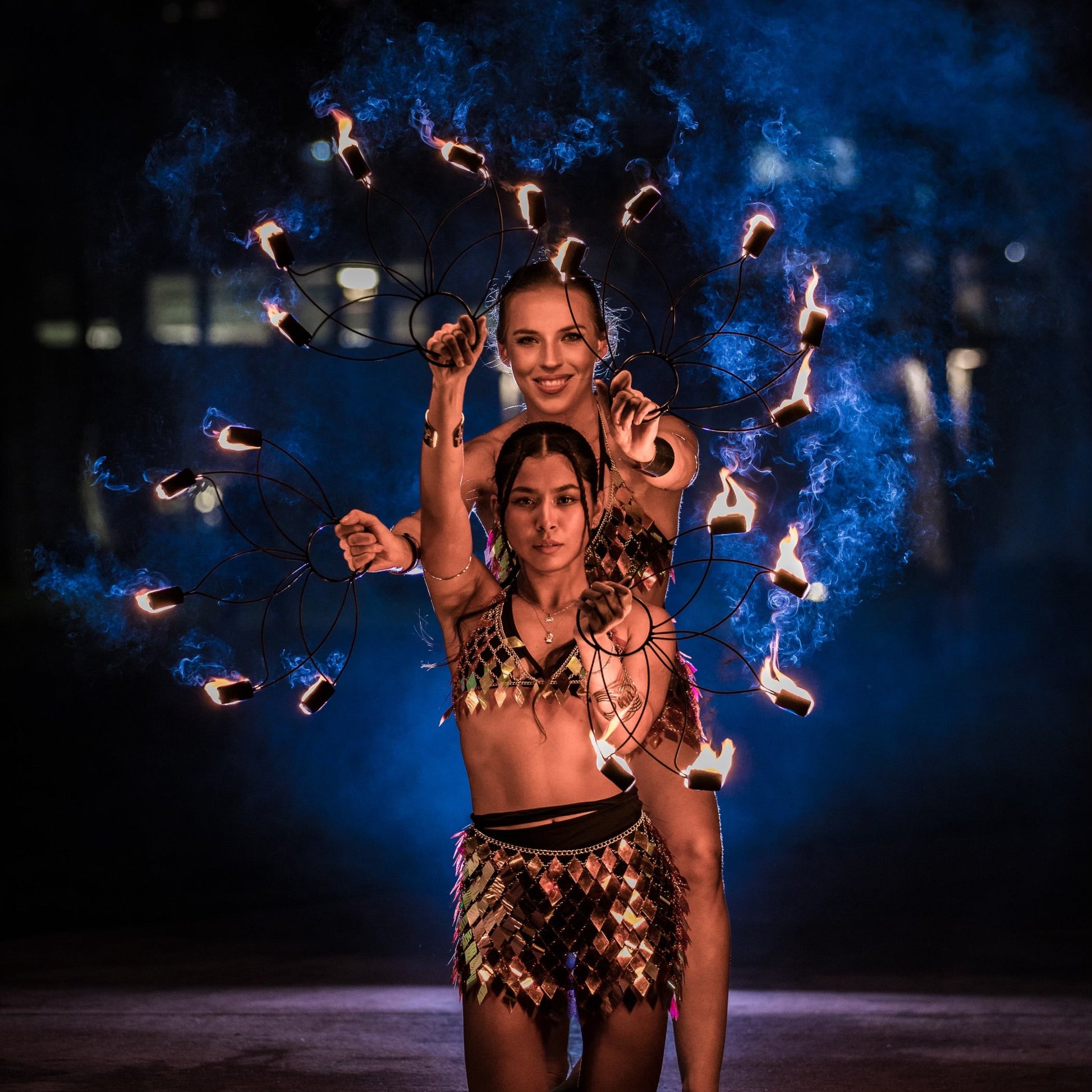 This fully choreographed routine includes dynamic duo choreography, synchronized fire acts, and professional lefty management throughout. Design for large private events, corporate functions, or festivals. This show turns any occasion into a high energy visual experience.